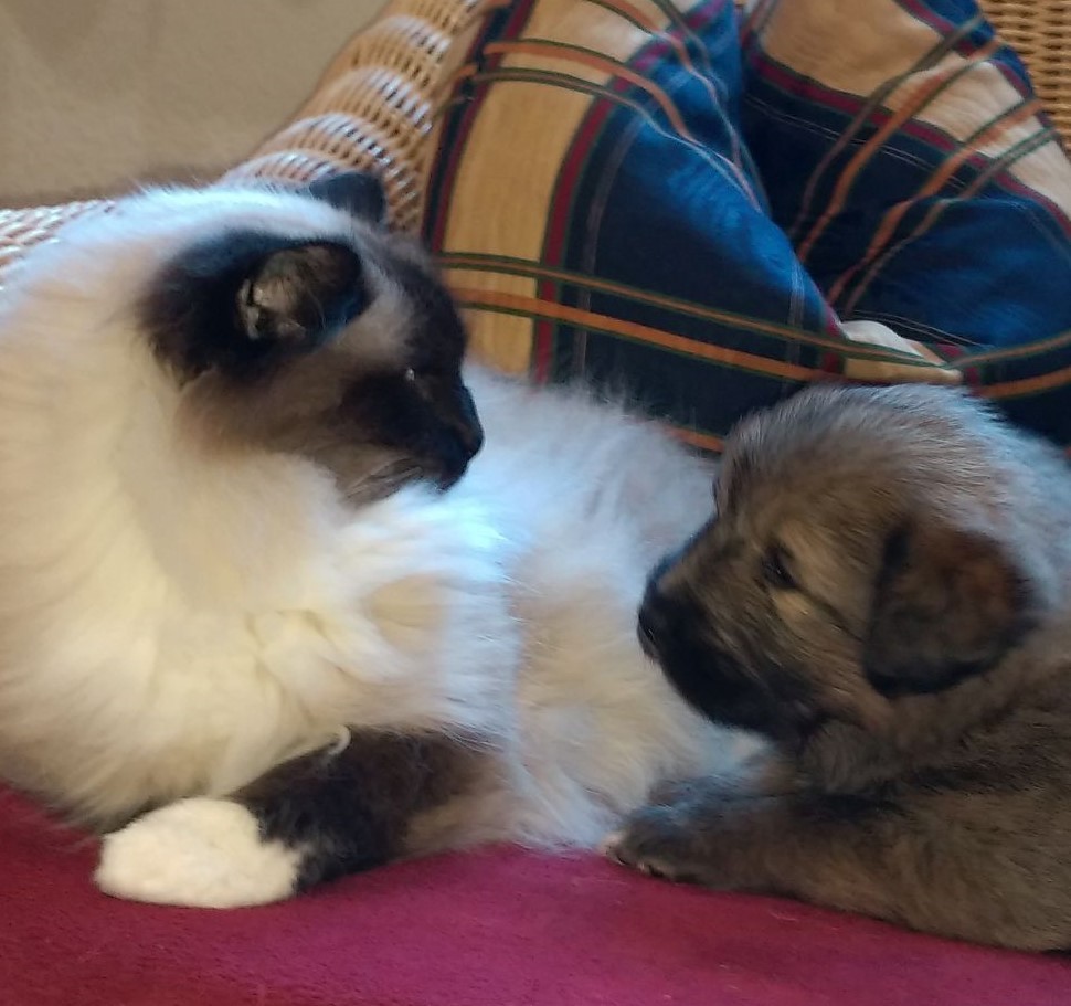 Sie haben von der Geburt an einen sehr engen Kontakt zu "ihrem" Menschen- und Hunderudel. Und wie man sehen kann, auch zu unseren Katzen.